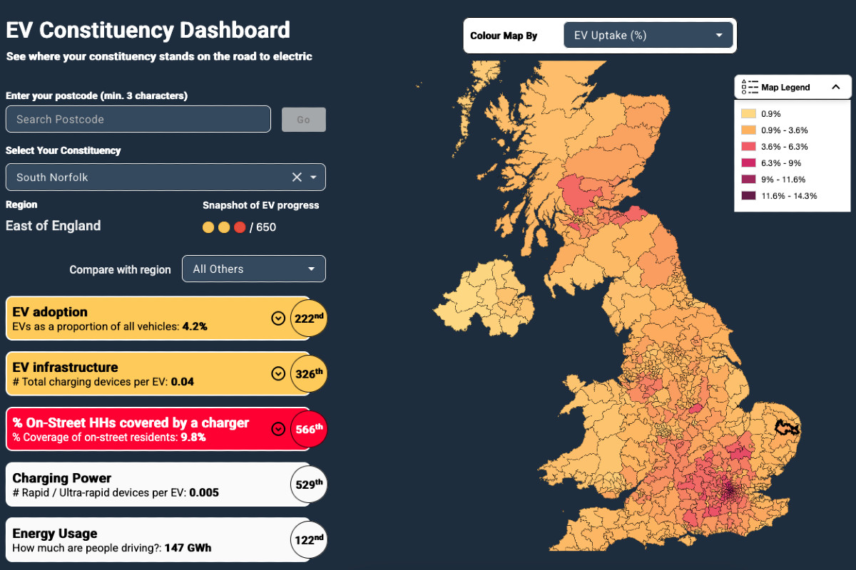 An updated EV Constituency Dashboard has exposed stark differences between areas in both EV uptake and access to public charging.